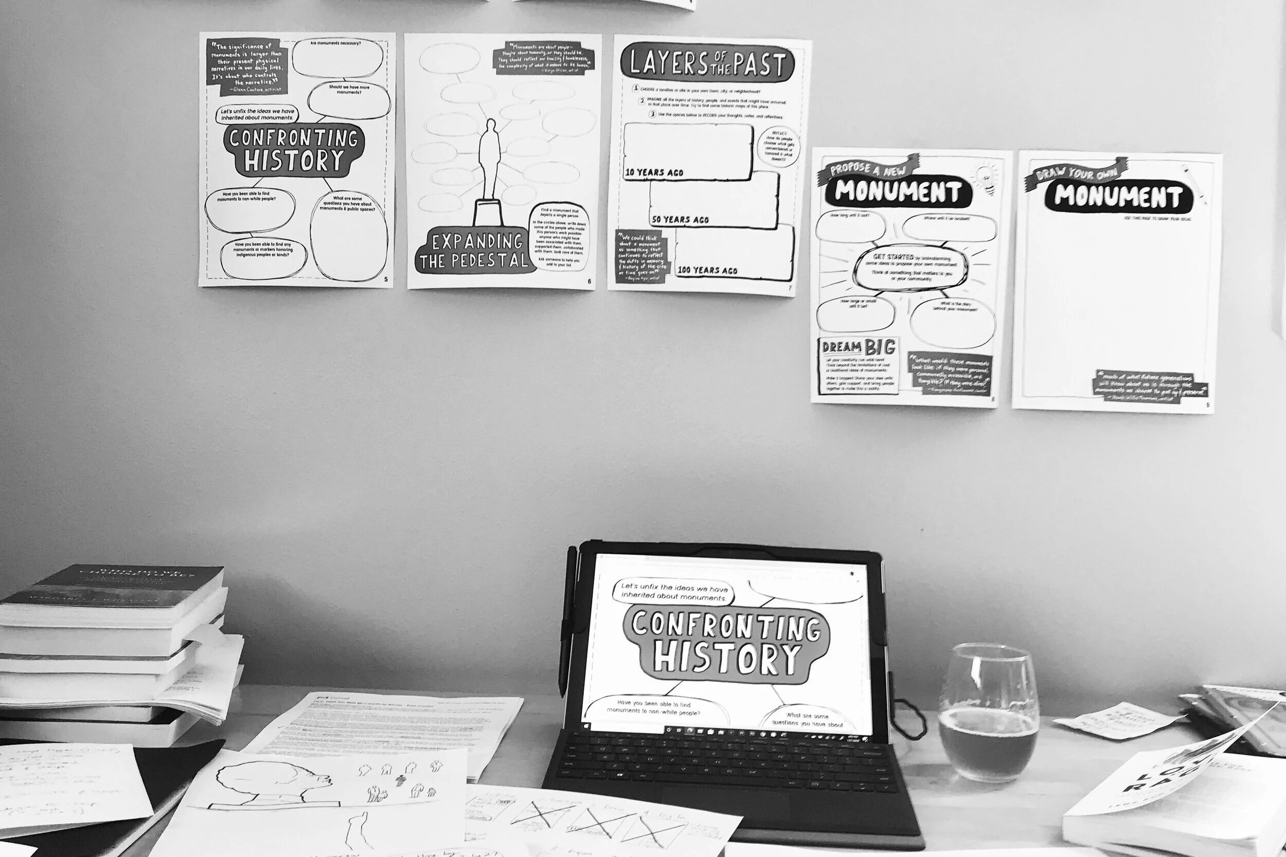 A hands-on activity guide that can be used with the search engine tools of the internet from your very own home. Young people can use the free activity sheet to exploring historical monuments in their (or another) community, ask questions about art and justice in public spaces, and propose their own ideas for a monument. This project was made as a partnership with Monument Lab.